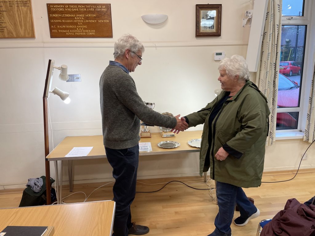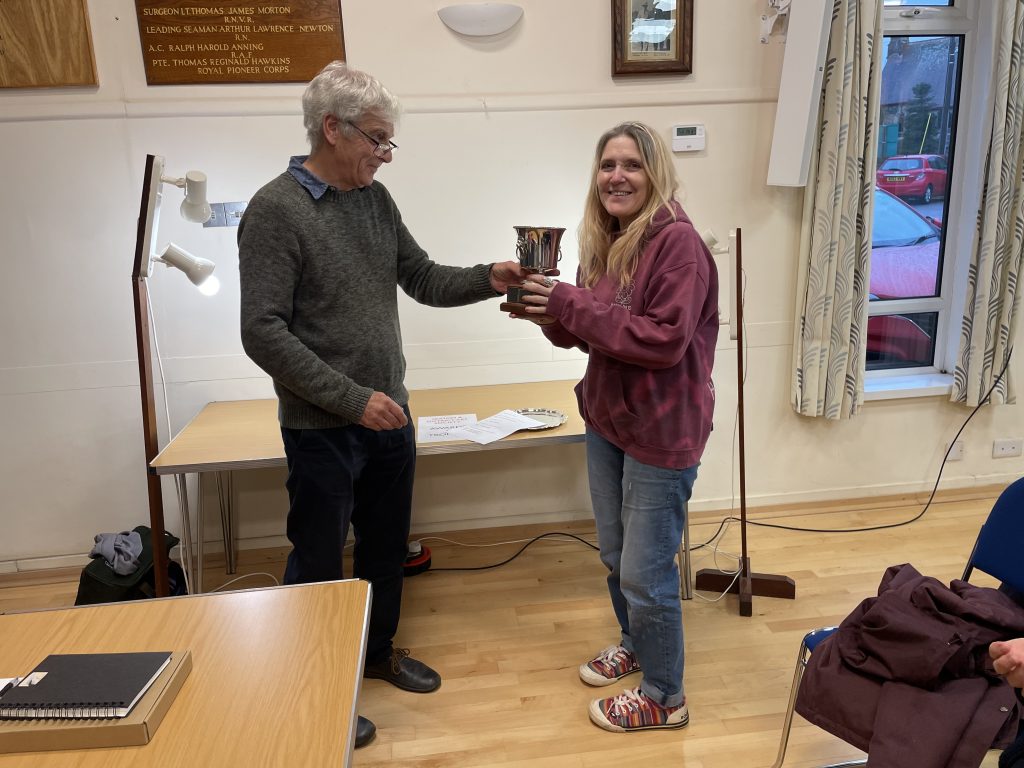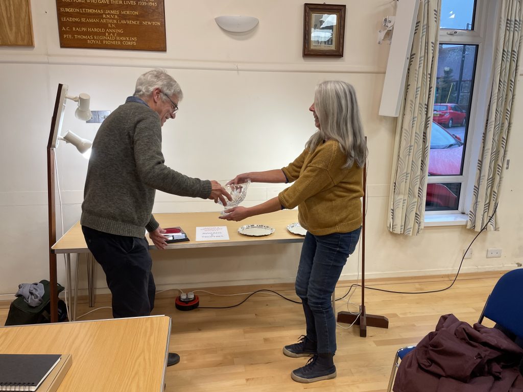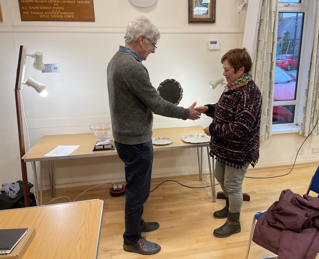 Jenny Oldfield receives the Joan Hutt Memorial Trophy for Still Life